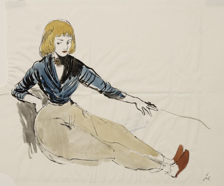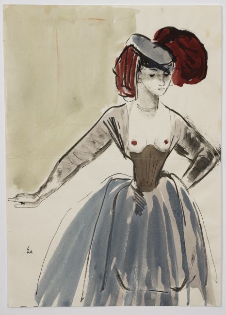 3 Bl.: Frauen aus verschiedenen Jahrhunderten. Tusche, Aquarell und Farbkreide auf Papier. Alle signiert.