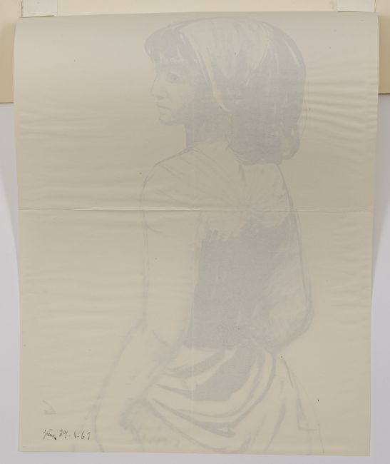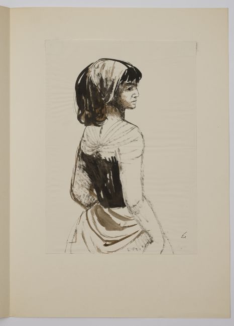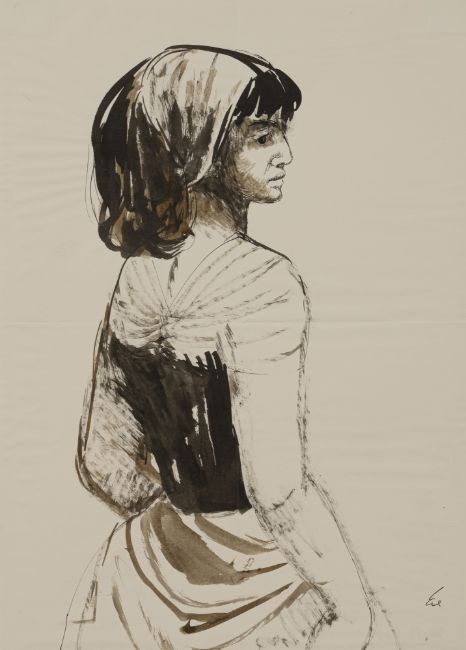 Mädchen. Tusche und Tinte auf Papier. In Tusche unten rechts signiert und rückseitig datiert "29. 4. 61".