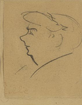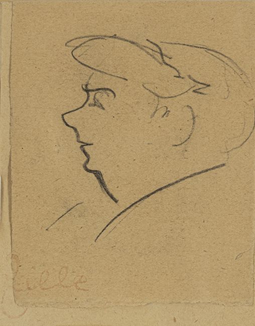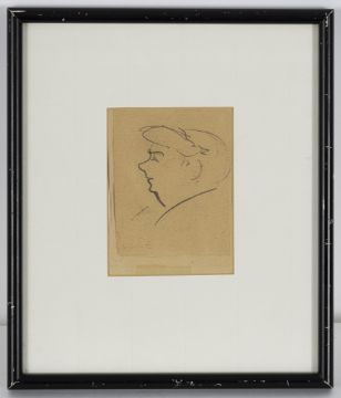 Frau im Profil. Kohle auf Papier, auf Papier aufgelegt. Nachlassstempel.