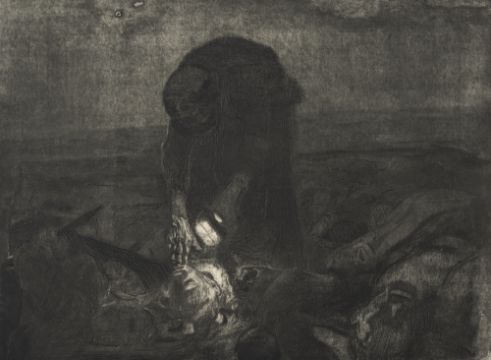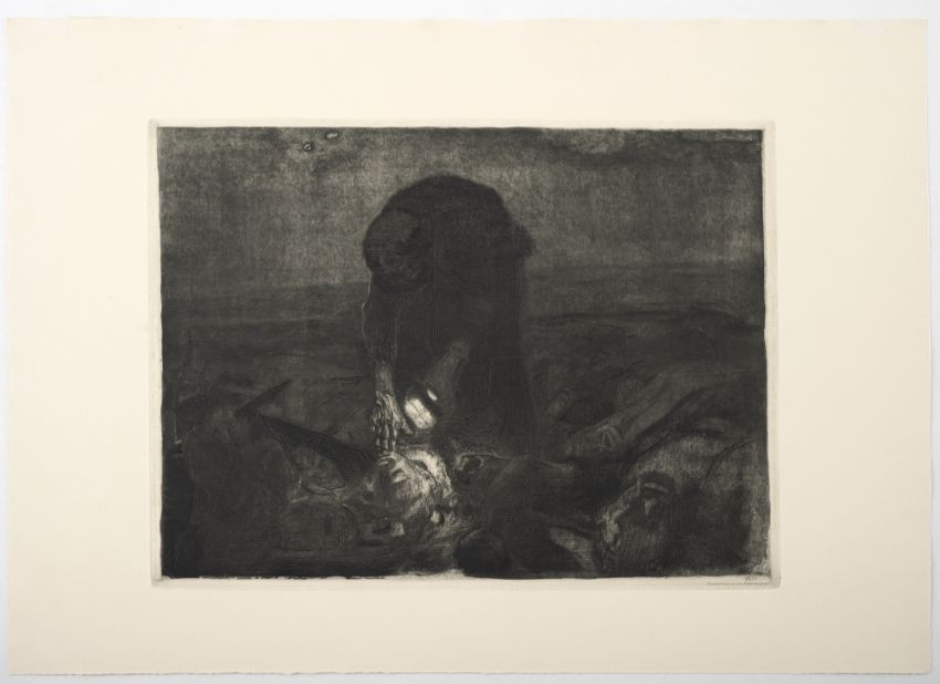 "Schlachtfeld", 1907. Radierung auf Kupferdruckpapier aus dem Zyklus "Bauernkrieg".