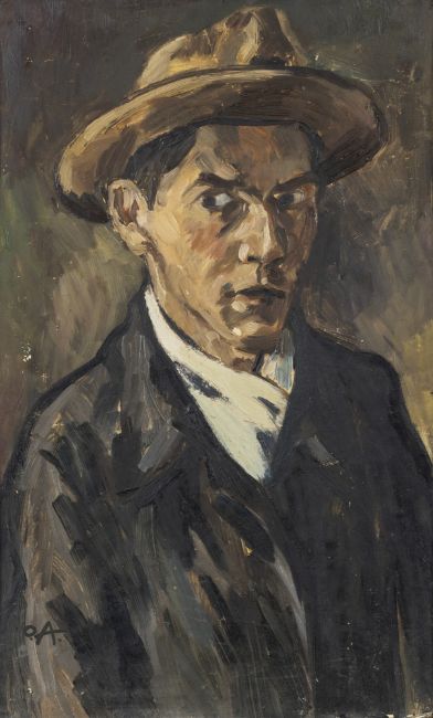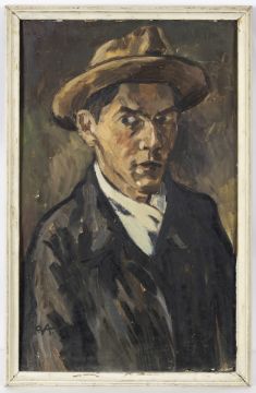 Selbstbildnis, 1924. Öl auf Papier, auf Karton aufgelegt. In Öl unten links monogrammiert und rückseitig datiert.