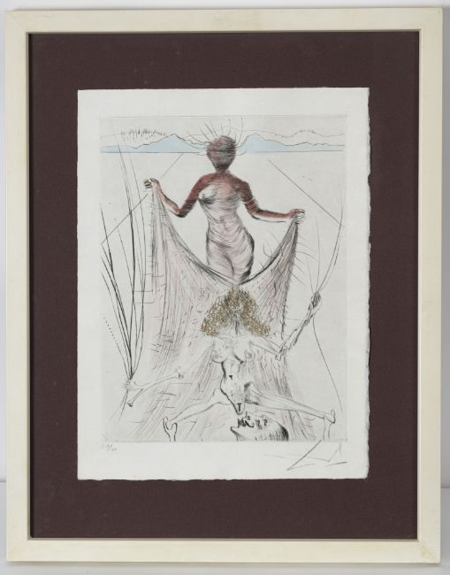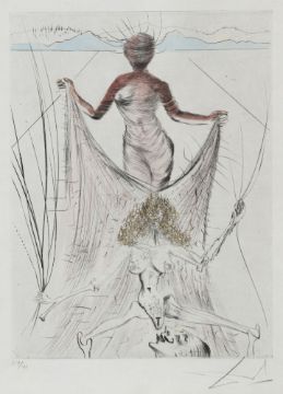 "Femme tenant le voile", 1969. Aquarellierte Radierung auf Japanpapier aus der Folge "Vénus aux fourrures". In Bleistift unten rechts signiert und unten links nummeriert 119/145.