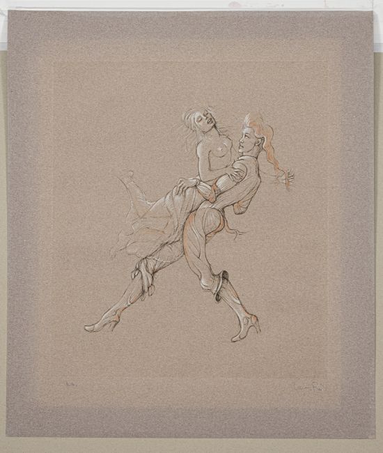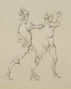 3 Bl., Scène de théâtre, um 1970. Farbradierung auf farbigem Papier. Alle in Bleistift unten rechts signiert und unten links bezeichnet "e. a.".
