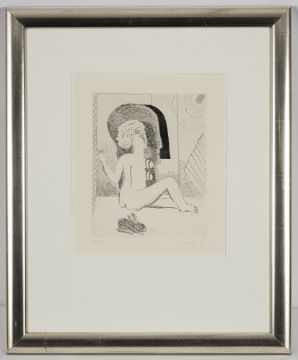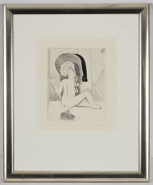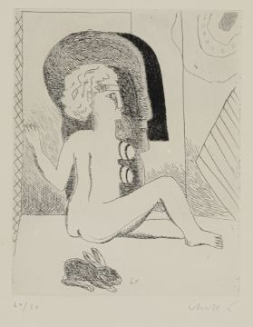 Weiblicher Akt mit Hase. Radierung auf Bütten. In Bleistift unten rechts signiert und unten links nummeriert 60/90.