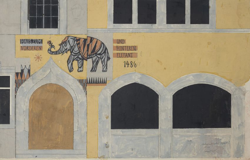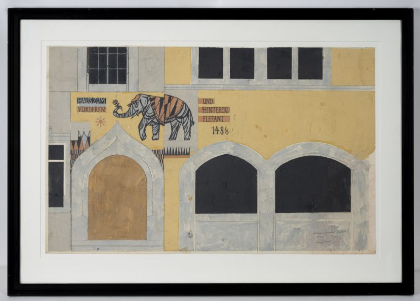 "Vorderer und hinterer Elefant". Gouache auf festem Papier. In Bleistift unten rechts signiert, betitelt und bezeichnet "1 : 10".