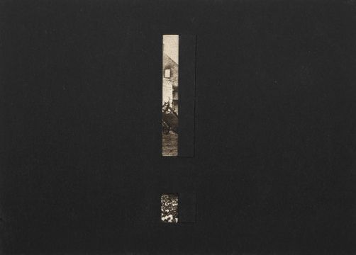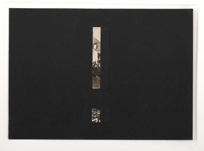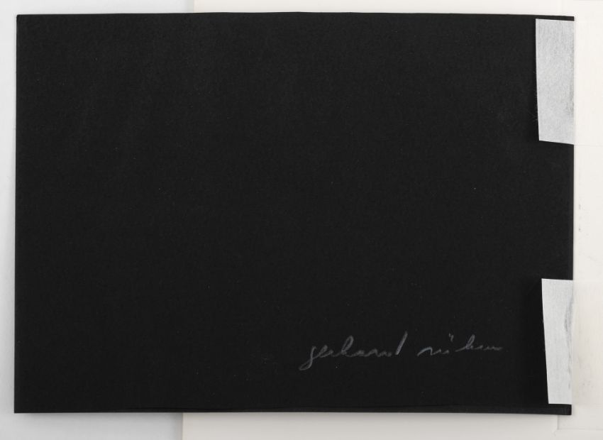 Ohne Titel. Collage aus schwarzem Karton und Offset. In weißem Stift rückseitig signiert.