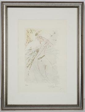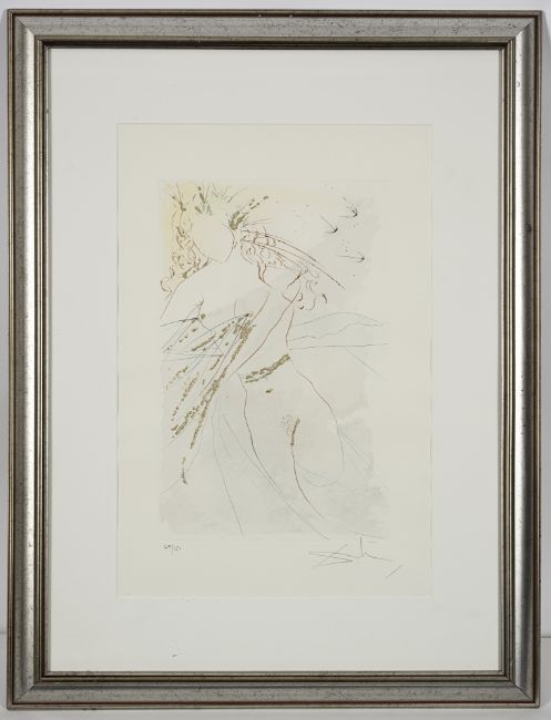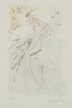 "Du bist ganz schön, meine Geliebte, und deine Brüste ...", 1971. Radierung mit Pochoir und Goldauflage auf Bütten aus der Folge "Das Hohe Lied des Salomon". In Bleistift unten rechts signiert und unten links nummeriert 69/250.