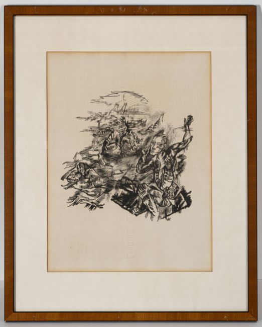 "Der gefesselte Kolumbus", 1920/1921. Folge von neun von ursprünglich zwölf Lithografien auf Bütten. Teilweise im Stein monogrammiert. Auflage: 120 Exemplare.