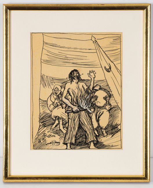 2 works: "Bettlerin - Taomina", 1921; "Beim Derwischtanz", 1929. Ink on paper, mounted on paper. Both monogrammed and titled in ink.