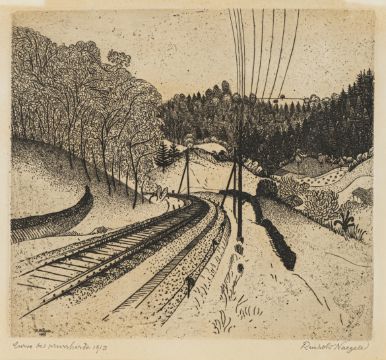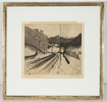 "Kurve bei Murrhardt", 1913. Radierung auf Bütten. In Bleistift unten rechts signiert, unten links betitelt und datiert sowie in der Platte signiert und datiert.