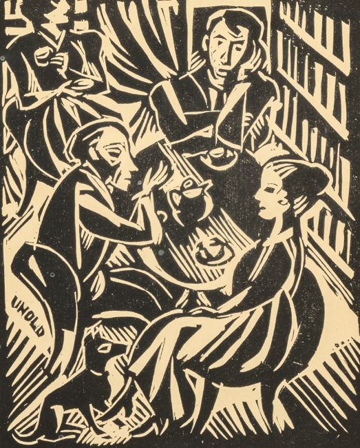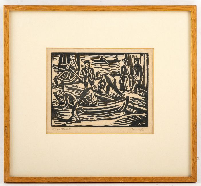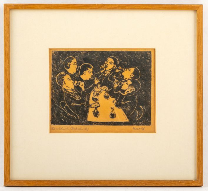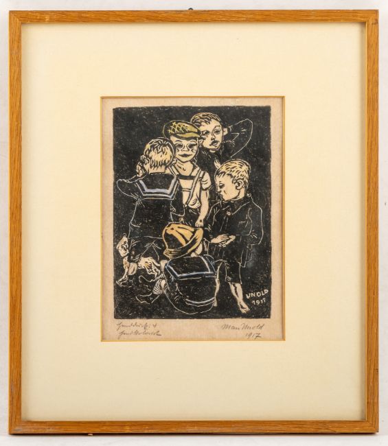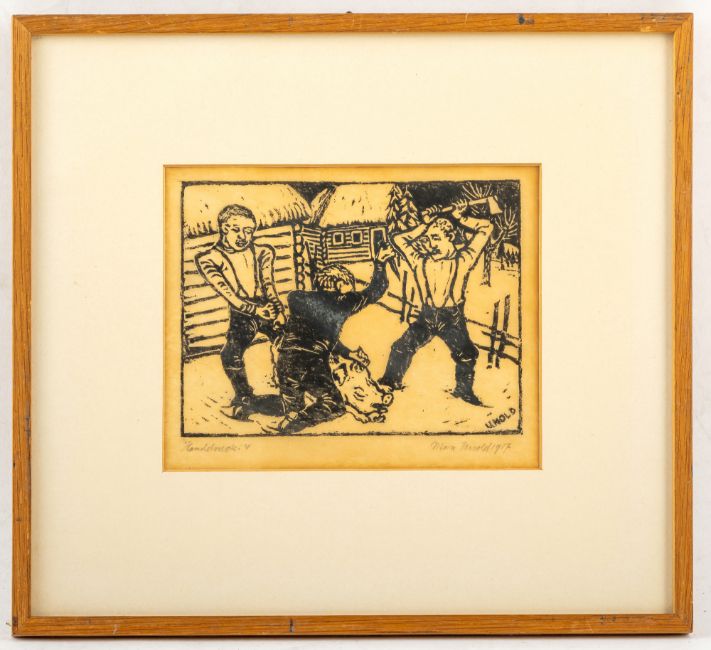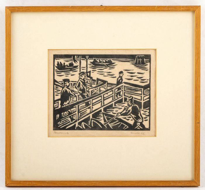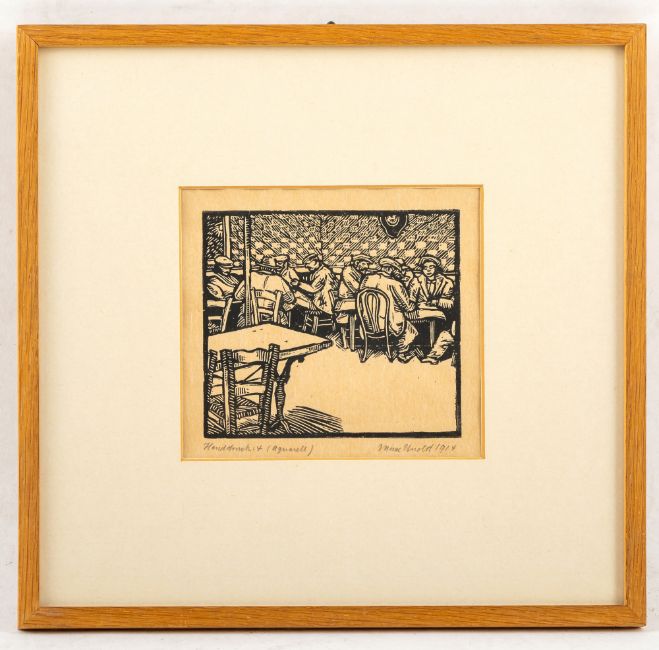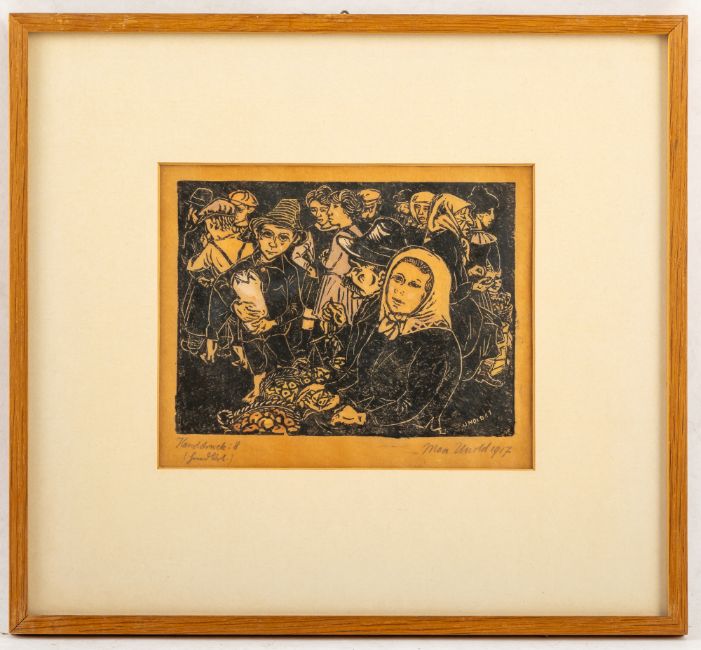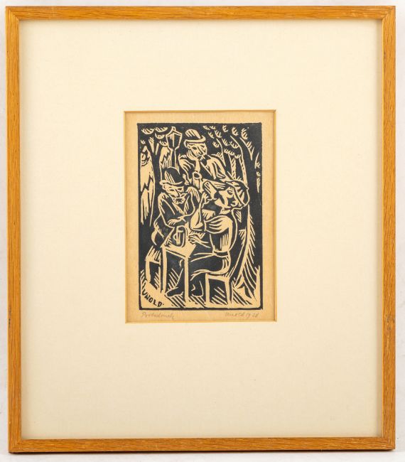 13 Bl.: Ohne Titel, 1914; 1917; 1920; 1922; 1923. Holzschnitt auf verschiedene Papiere. Teilweise in Bleistift signiert, datiert und bezeichnet "Handdruck".