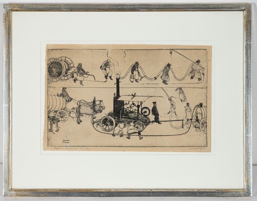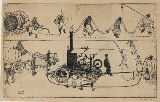 "Stuttgarter Abfuhrwesen (Schlauchartillerie)", 1911. Etching on wove paper. Signed, dated and numbered 50/150, as well as monogrammed, dated and inscribed "(Stuttgart)" in the plate.