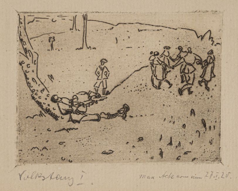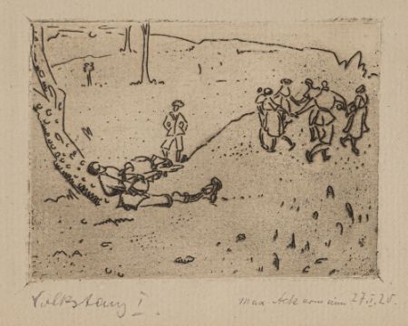 "Volkstanz I", 1920. Etching on paper. Signed and dated "27. I. 20" in pencil lower right.