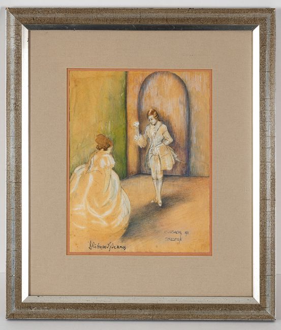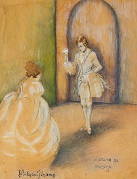 Überreichung der silbernen Rose - Richard Strauß, 1911. Bleistift und Aquarell auf Pergamentpapier. In Tinte unten rechts signiert, datiert und bezeichnet "Dresden" sowie unten links bezeichnet "Richard Strauss".