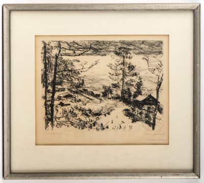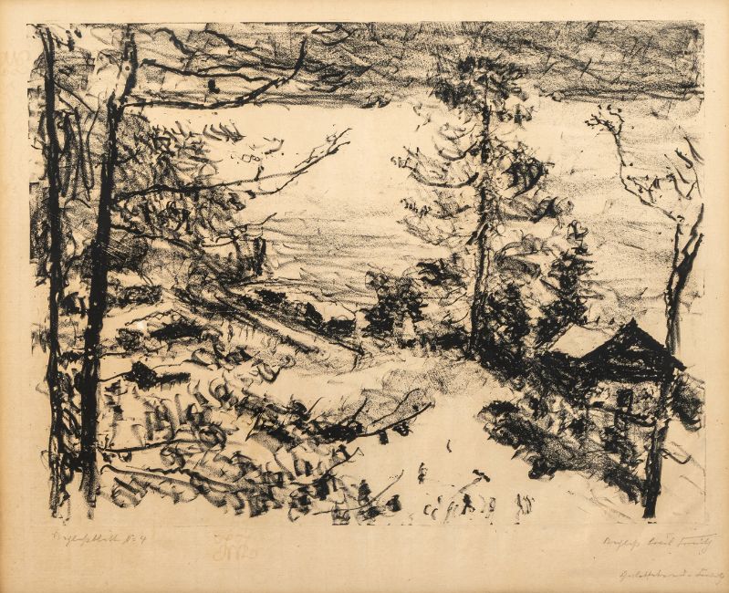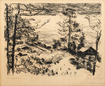 "Seeufer", 1922. Lithograph on laid paper from "Vorfrühling im Gebirge". Inscribed "Nachlaßblatt N= 4" and signed by Charlotte Berend-Corinth.