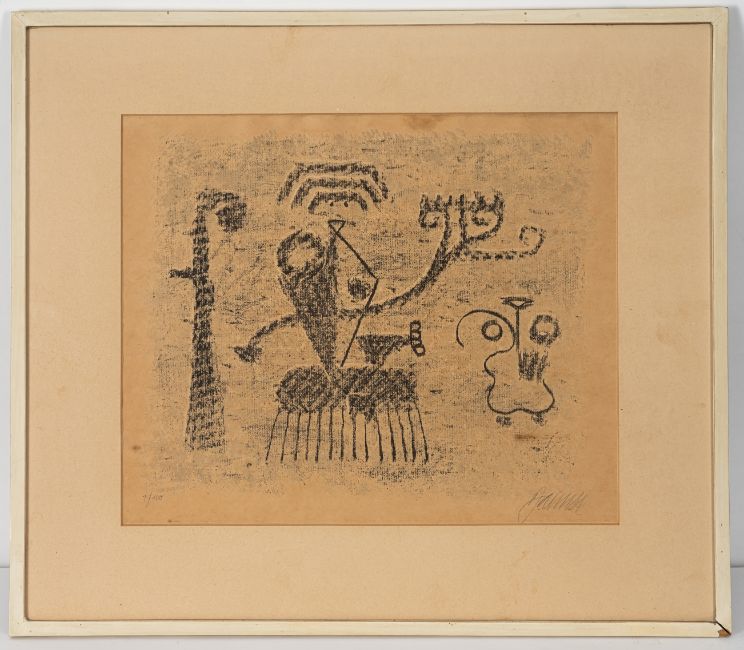 "Ischar, du Göttin, hast die Liebe des Gilgamesch vergeblich gefordert", 1947. Lithograph on Japanese paper from "Sumerische Legende". Signed in pencil lower right and numbered 7/100 lower left.