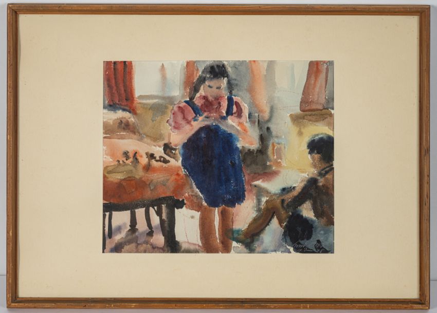 2 works: Children, 1948; Landscape, 1950. Watercolour on wove paper. Both signed and dated.