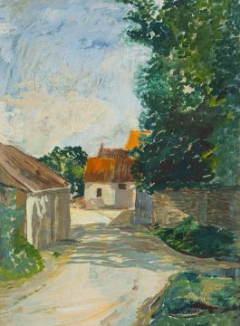 Dorfstraße. Gouache auf Papier. In Gouache unten rechts signiert.
